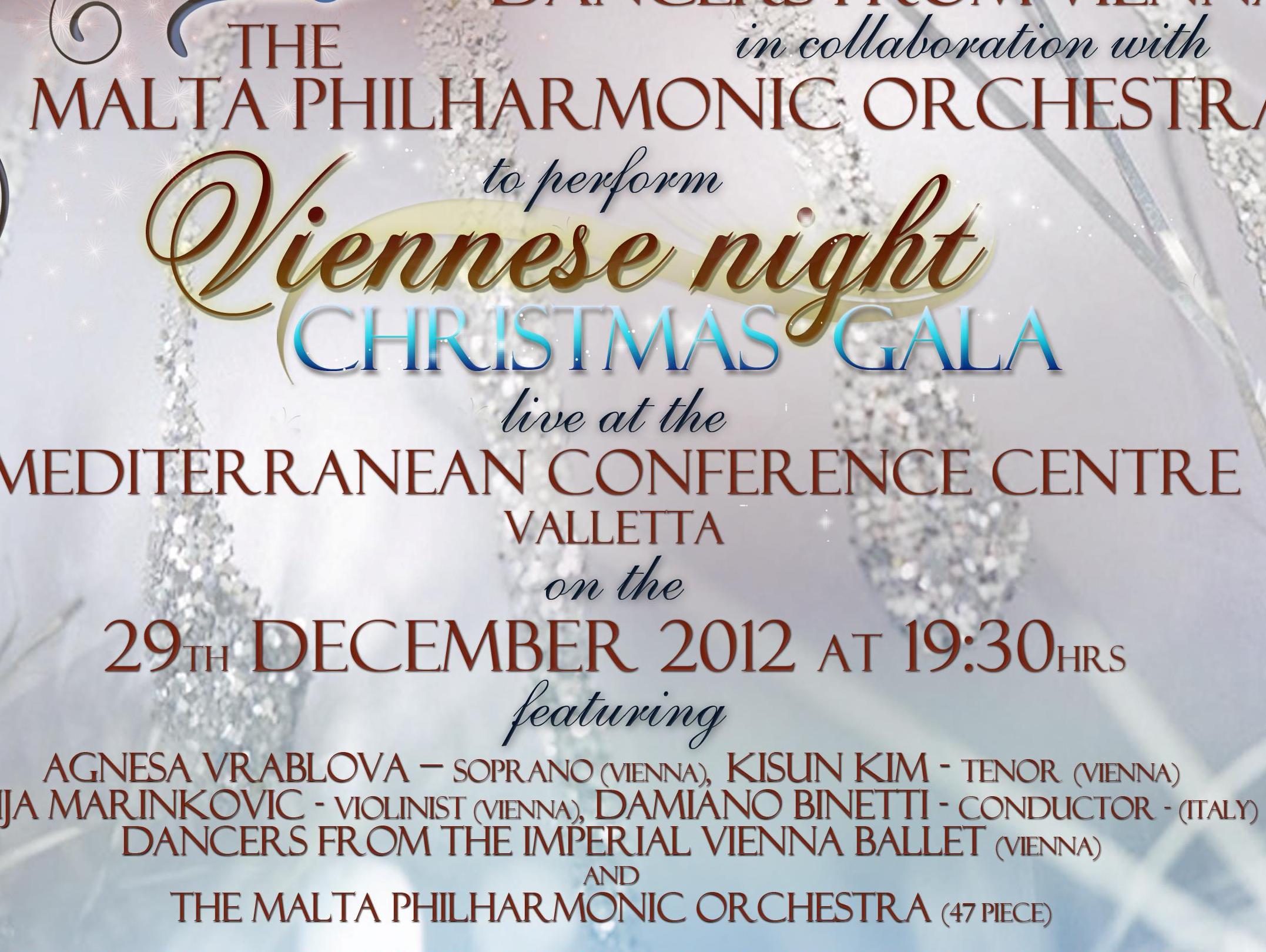 A Viennese Night - Christmas Gala Special is the perfect event for all classical music lover that will fill your heart with emotions, warmth, romance and passion! Due to last years extremely positive feedback this years edition will be even bigger and with a much fuller version held Live at the Mediterranean Conference Centre (Valletta) on 29th December 2012 at 19:30.
